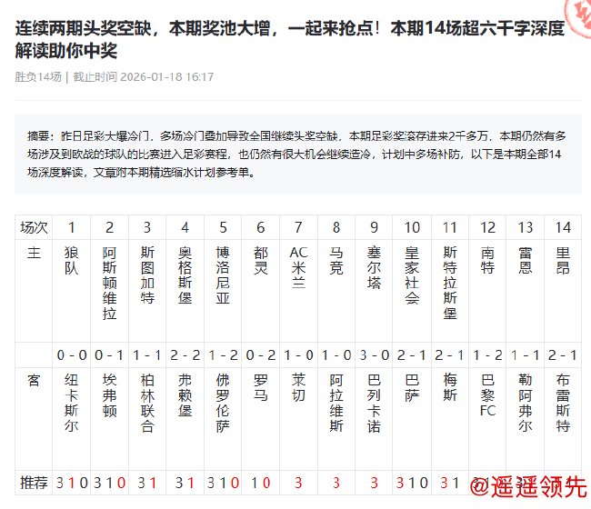 北京时间1月20日,足彩26013期停售!新年伊始,足彩方面也是冷门不断,常有百万大奖诞生,今天我们就来盘一盘,2026年以来已揽百万足彩大奖的新浪专家![新浪足彩专家助力大奖!]
