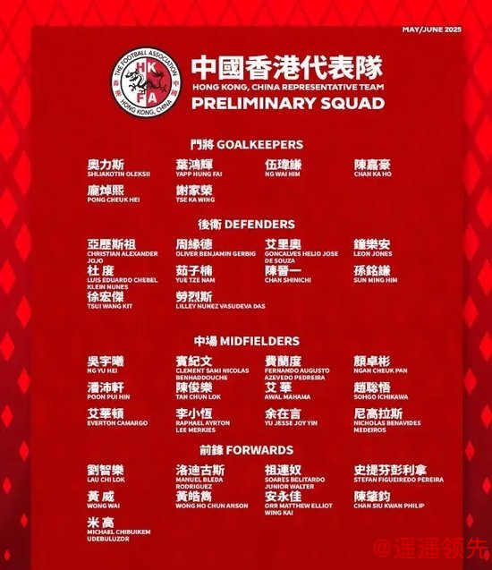 记者寒冰报道 中国香港队公布最新一期37人初选名单,本赛季效力中超、中甲的12名中国香港球员之中,多达10人入选。本赛季,中国香港球员凭借稳定表现,已然成为中超亮点之一。